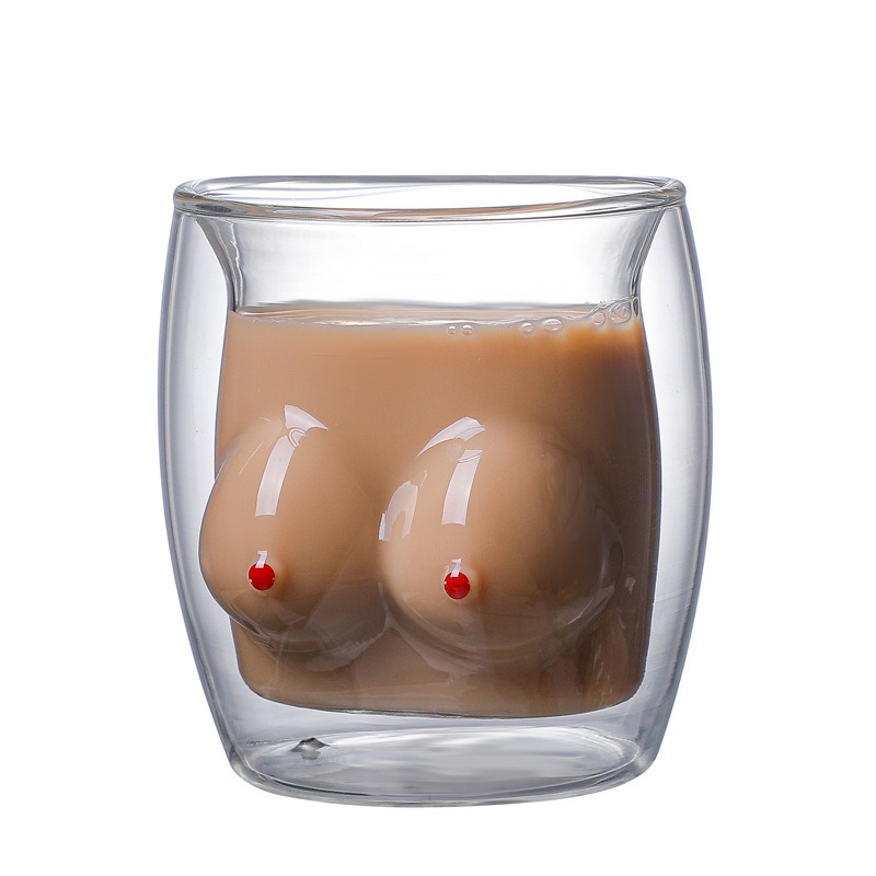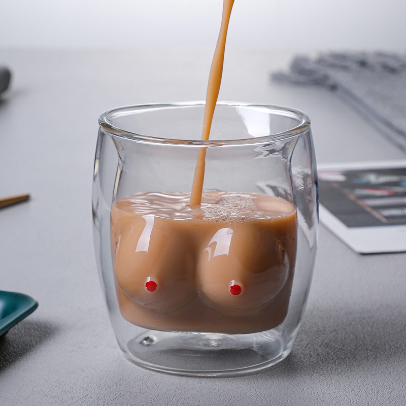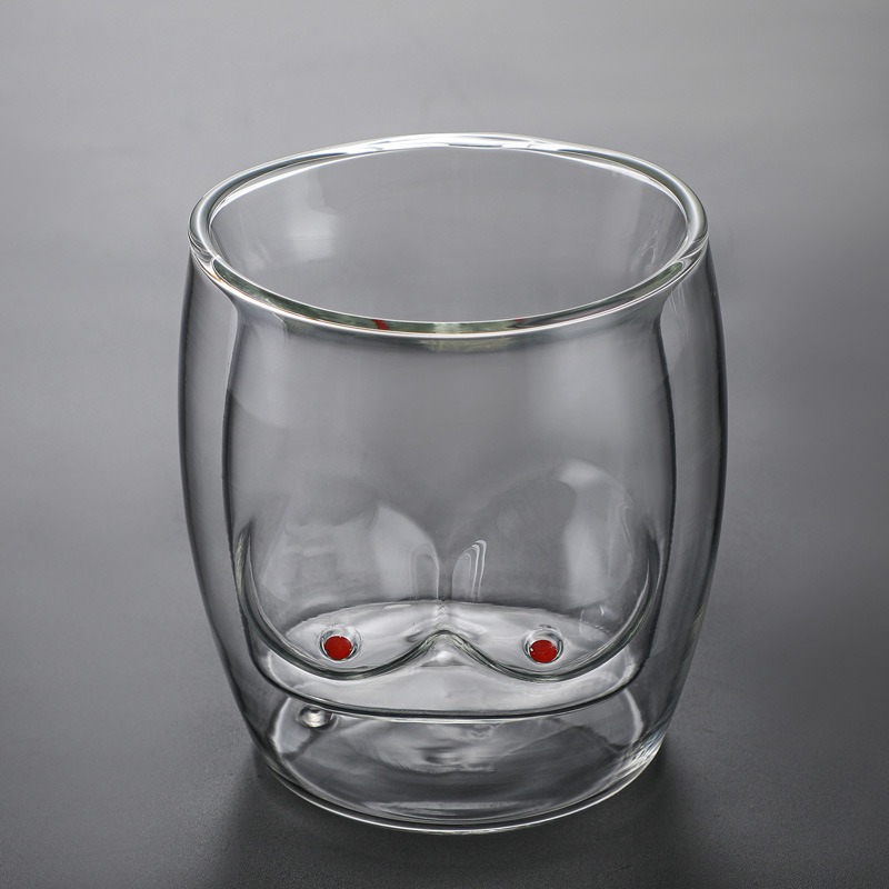Product category: water cup Style: Cartoon Function: High temperature resistance Structure: double layer Applicable objects: general Pattern: cartoon Shape: irregular Applicable population: general Size (height, diameter): 10.5 * 9 Color: double cup for breast enhancement Capacity: 201-300ml Material: heat-resistant glass